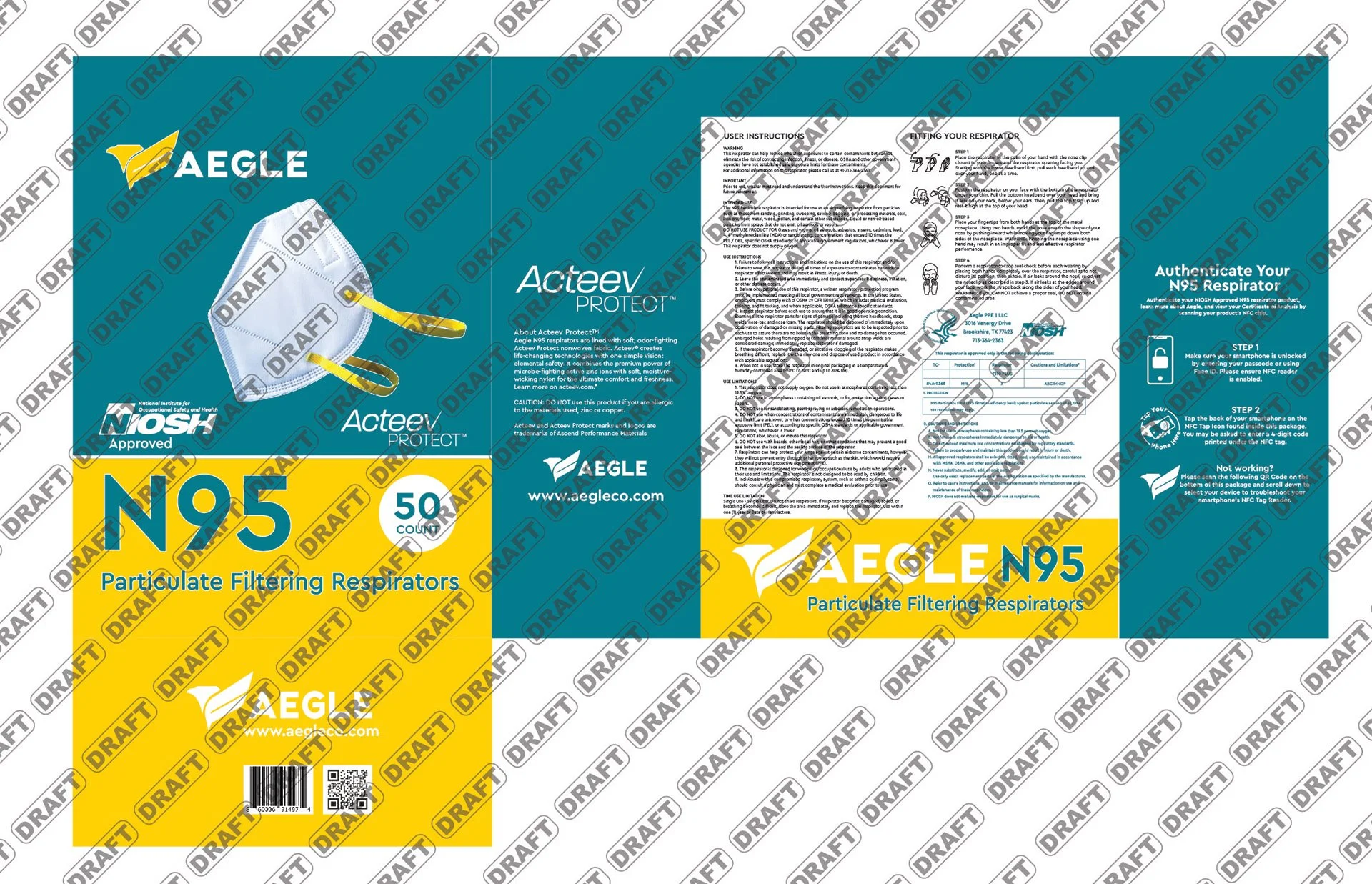50 count pouch packaging for the Acteev incorporated N95 foldable mask, which was transformed from box packaging to pouch packaging